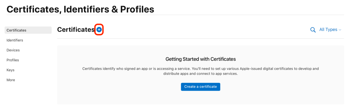 1. Apple Developer(https://developer.apple.com) -> Certificates, Identifiers & Profiles 클릭